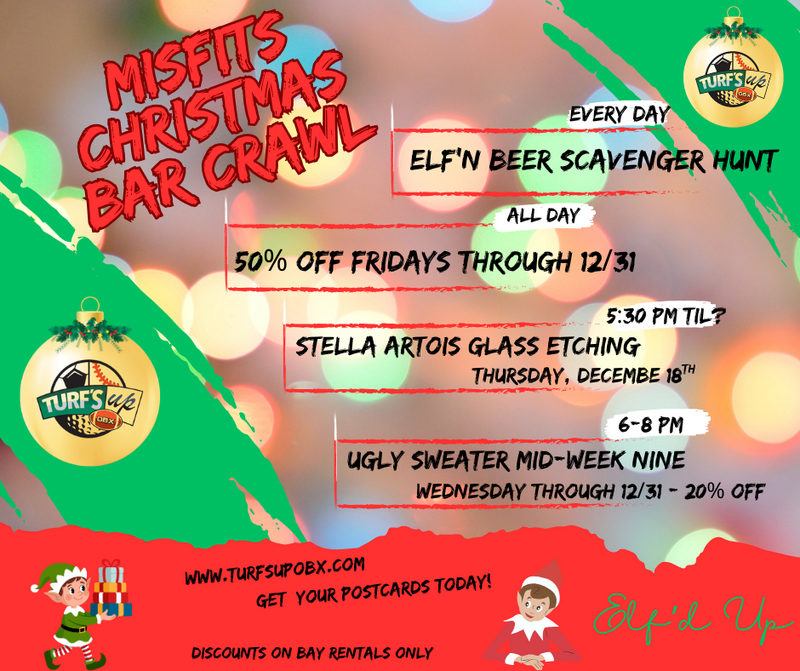 Join Turf's Up OBX anytime from November 21 through New Year's Eve and experience the magic of the season. Turf's Up is one of 12 Misfits, so stop in, get your postcard and let the festivities and Christmas spirit fill your heart. Proceeds from this event benefit the Outer Banks Relief Foundation and the Community Care Clinic of Dare. Stay tuned for Misfit related events coming soon.